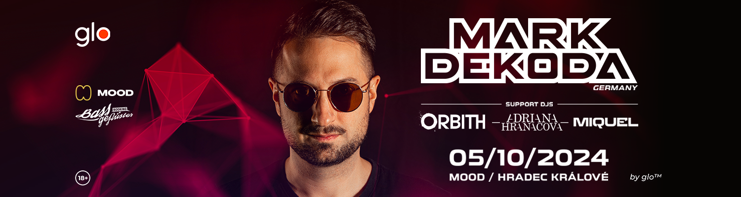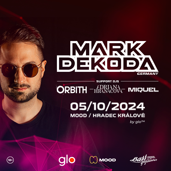Mark Dekoda začal s produkcí hudby koncem roku 2006 a v roce 2009 přešel od undergroundového progresivního trancu k technu. Je zastáncem toho, že na vytvoření kvalitních skladeb potřebujete hodně času, na rozdíl od vydávání remixu za remixem jako mnoho umělců z Mainstream Electric. Jeho předchozí nahrávky mluví samy za sebe a během pár okamžiků se dostaly do hitparád Beatport a dalších. Skladby jako "Snow White", "Ghost" "Crackin" a "Cold Cuz" byly také zahrnuty do TOP 5. Jeho skladby jsou stále dynamičtější s každým vydáním. Ostříleného německého DJ doplní trojice českých DJ's! Těšit se můžete na všem dobře známeho DJ Orbitha, domácího hradeckého matadora DJ Miquela a to nejlepší na konec! Jako růže mezi trním se za mixem objeví okouzlují DJka Adriana Hranáčová! Celý tenhle mejdan je powered by glo™!