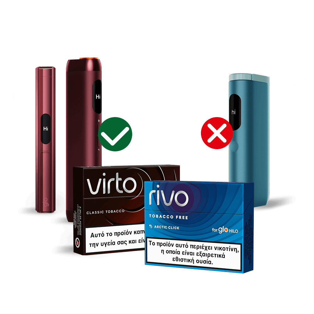 Οι συσκευές glo™ HILO και HILO Plus έχουν σχεδιαστεί να λειτουργούν αποκλειστικά με τις ράβδους virto™ και rivo™, οι οποίες είναι κατασκευασμένες για θέρμανση ακριβείας και αξιόπιστη απόδοση με την τεχνολογία HILO.