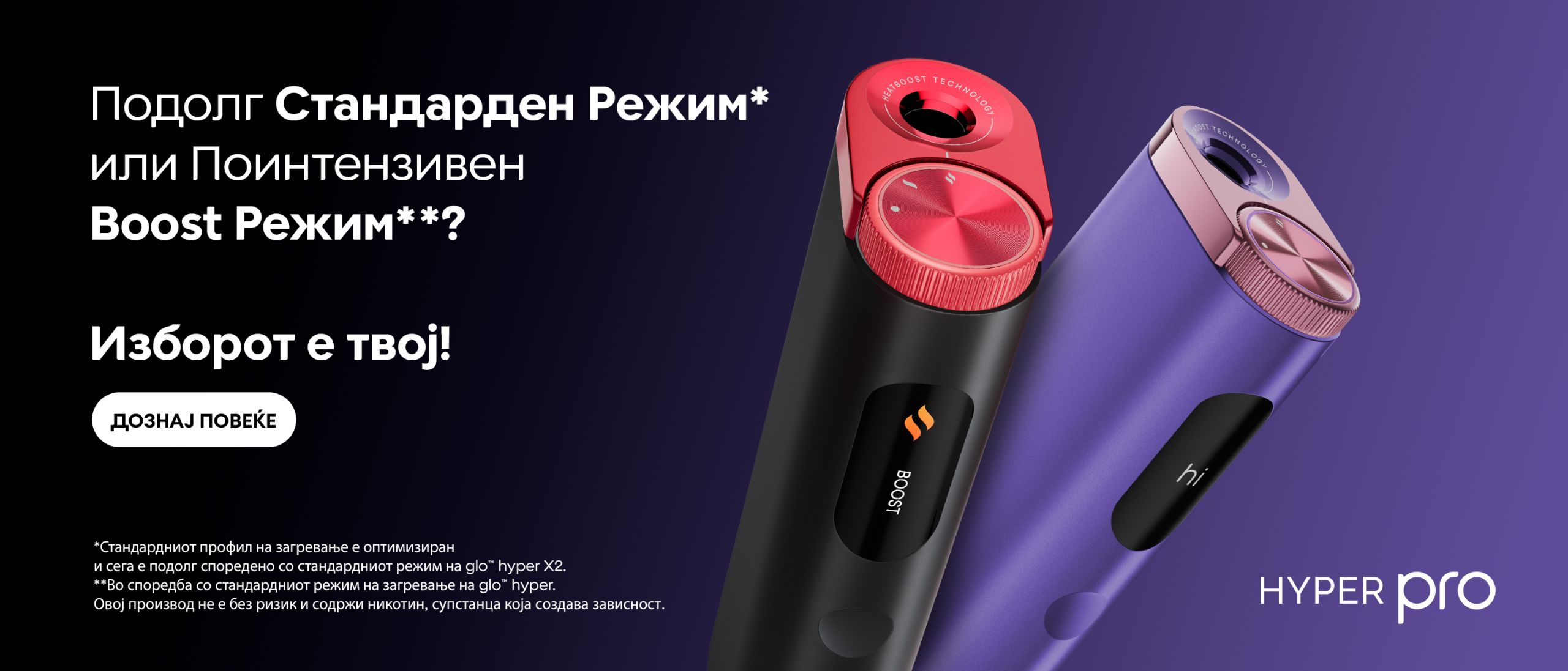 Овој производ не е без ризик, ослободува никотин кој предизвикува зависност.