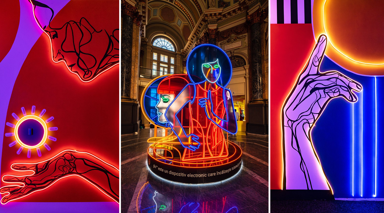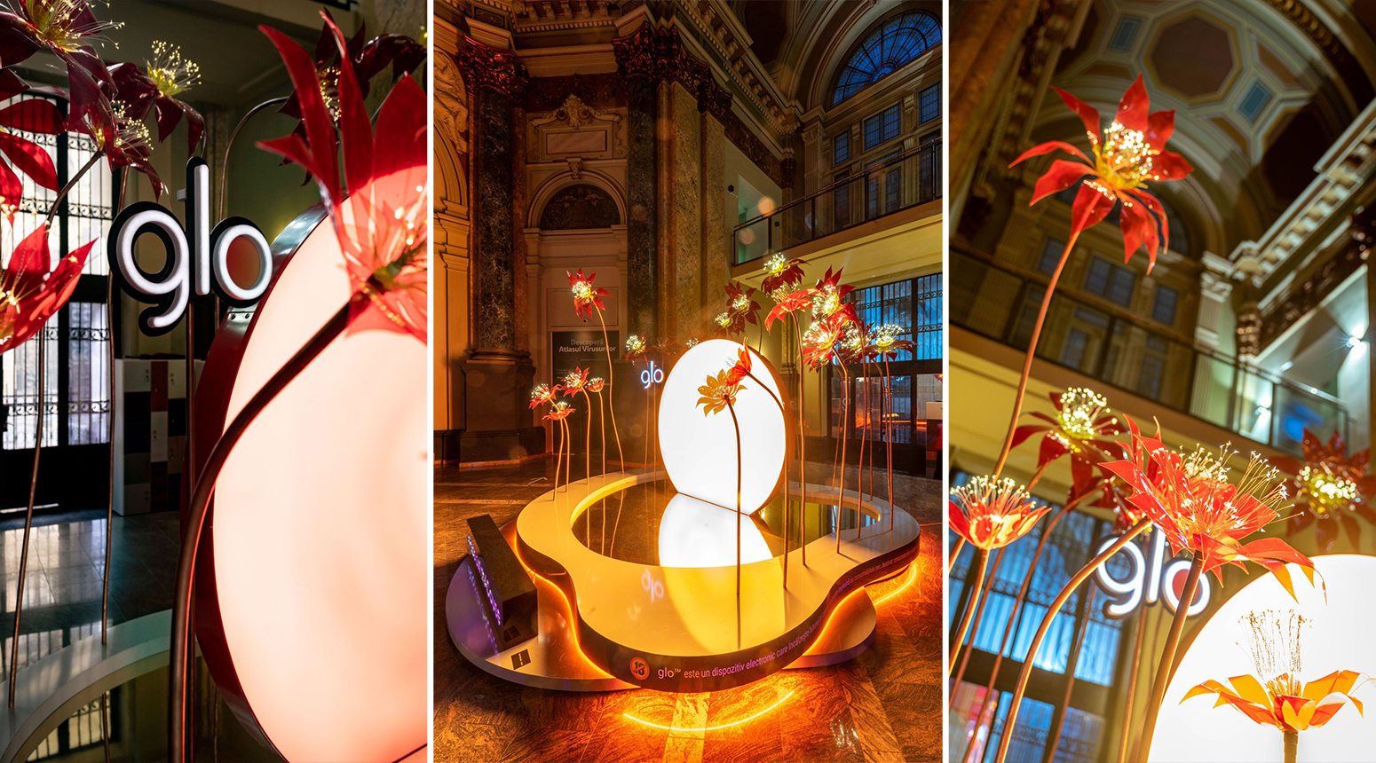 Vizitatorii au fost întâmpinați, încă de la intrarea în Palat, de instalația luminoasă „Oasis” semnată de Mihai Mureșan, artistul invitat de glo™ să creeze și să inoveze în cadrul ediției cu numărul 10. Lucrarea din holul central a fost o oază de flori rare, inspirate din florile de cactus, numai bună de admirat, fotografiat și postat. „Oasis” a fost o bucată de natură în centrul orașului aglomerat, o invitație la (re)descoperirea emoțiilor.